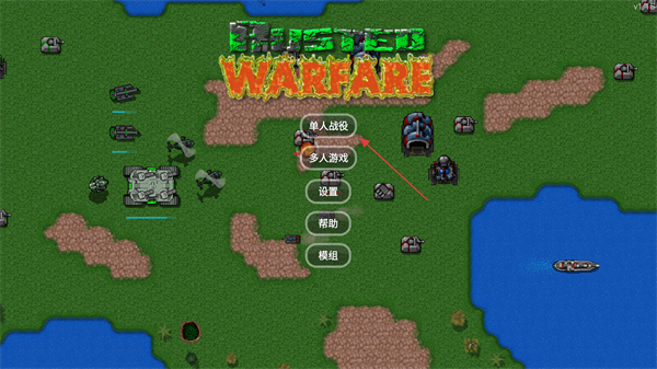 1、进入游戏主界面,呈现像素风格的画面,点击单人战役的选项并进入关卡列表。