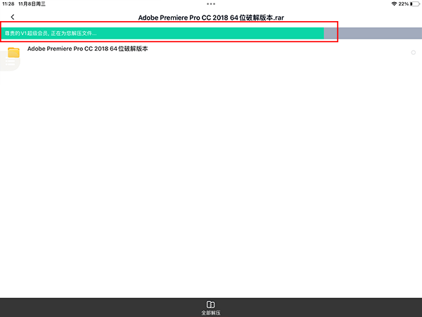 2、然后点击全部解压或者勾选你要解压的文件进行解压
