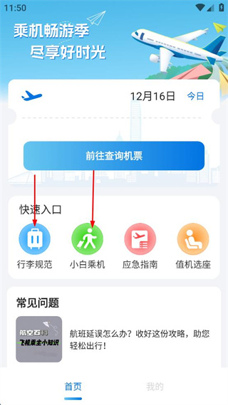 3、返回主界面的快速入口区域,点击小白乘机选项了解乘机相关问题。