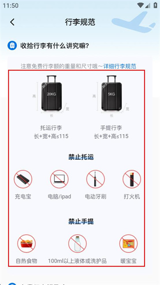 2、在主界面找到快速入口区域,点击行李规范选项查看相关内容。