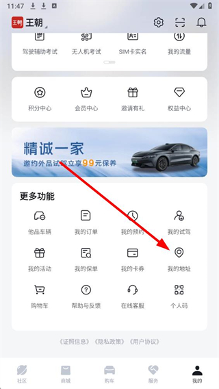 1、在比亚迪应用界面,点击底部我的选项,进入个人相关操作页面。