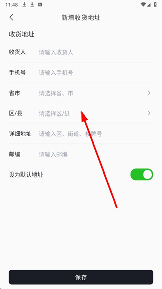 4、在新增收货地址页面,依次填写信息,确认后点击保存完成地址添加。
