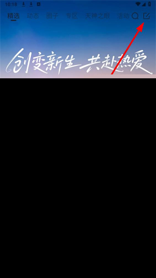 2、在社区页面,点击右上角的发布图标,进入发布动态的操作界面。