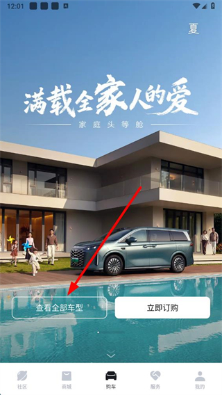 2、在购车页面,点击查看全部车型,进入王朝车型库页面。