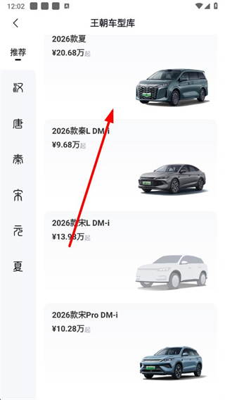 3、在王朝车型库页面,选择意向车型,进入车型详情页面。