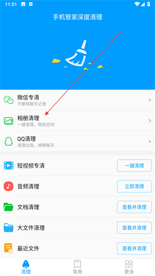 1、打开手机管家软件,进入深度清理页面,点击相册清理选项进入对应页面。