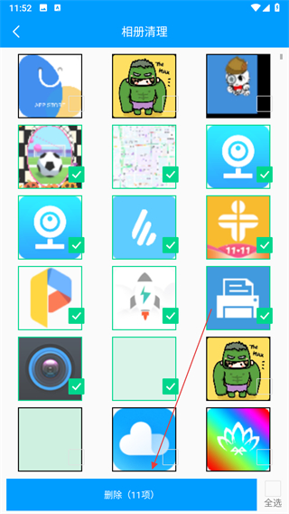 2、在相册清理页面中,选择需要清理的图片内容,勾选对应的图片选择框。