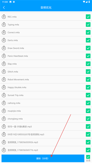 3、在音频优化的页面内,点击右下角全选的按钮。