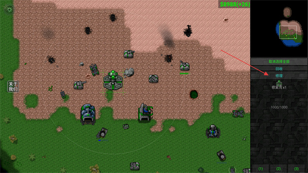 3、若机甲遭遇敌人的攻击时,可点击机甲在右侧弹出工具栏,点击修复的按钮能够修复好机甲。