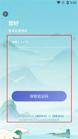 4、进入登录页面后,在手机号输入框填写对应号码,准备后续获取并填写验证码完成登录。