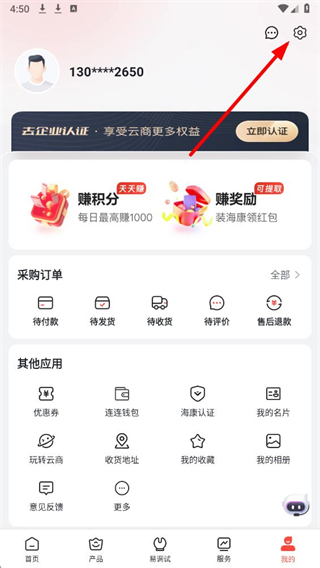 1、在海康云商app界面,点击底部我的选项,进入我的个人页面。