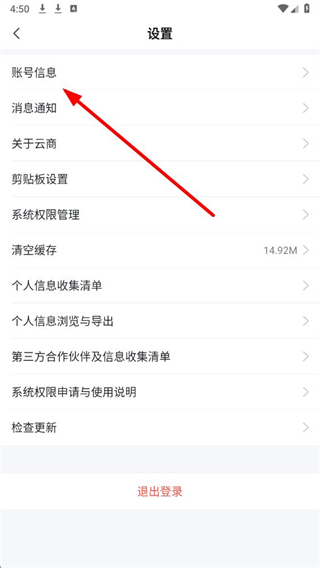 3、在设置界面,找到账号信息选项并点击,进入账号信息的详情页面。