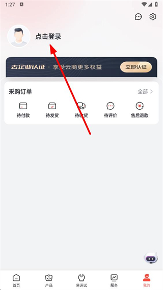 2、在我的页面中,找到上方的点击登录按钮并点击,跳转至登录相关操作页面。