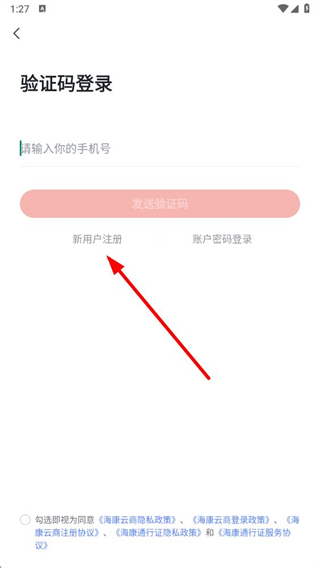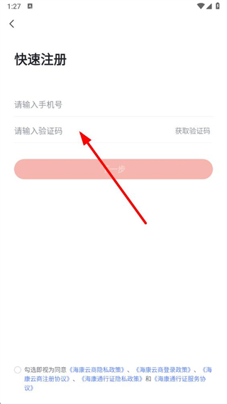 4、在页面输入对应的手机号,获取并填写验证码,勾选协议后,点击下一步完成账号注册操作。