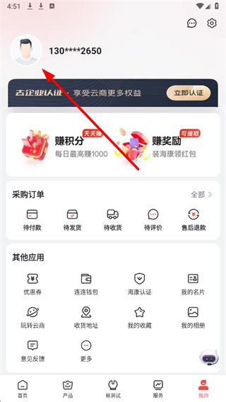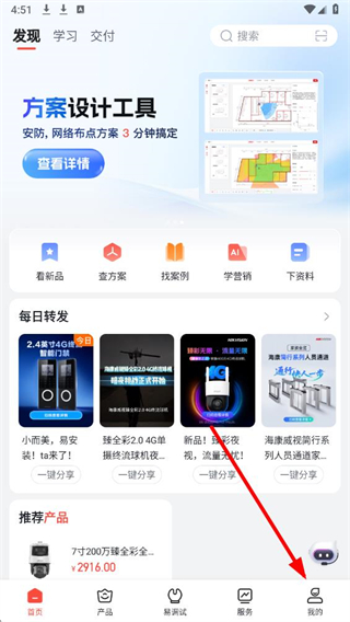 1、打开海康云商后,点击底部我的选项,进入个人功能界面。