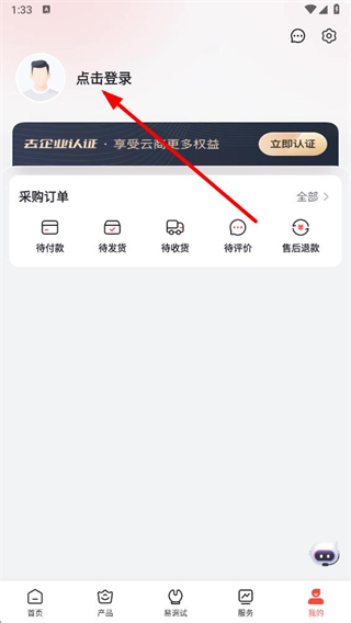 2、在我的页面中,找到上方的点击登录按钮并点击,跳转至登录方式选择页面。