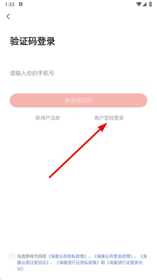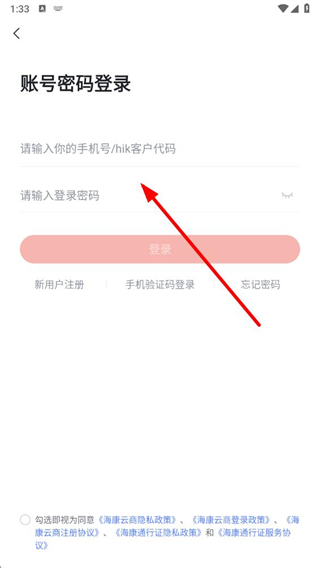 4、在账号密码登录页面,输入对应的手机号与登录密码,勾选协议后,点击登录完成操作。