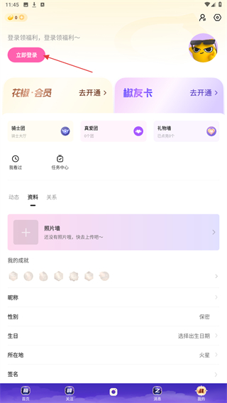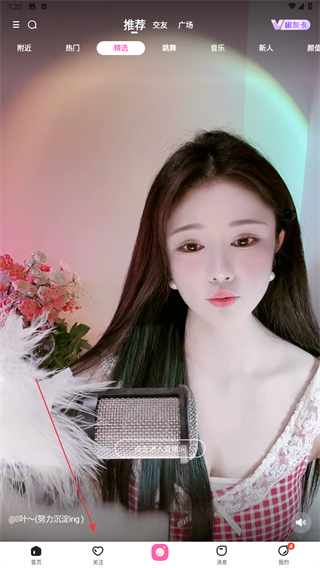 1、打开花椒直播的应用,点击导航栏中关注的按钮。