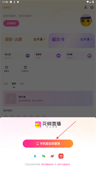 3、在弹出的登录选项弹窗中,选择手机验证码登录。