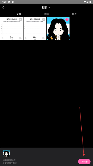 3、进入选择的页面内,选择照片后并点击下一步的按钮。