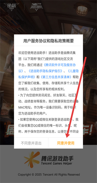 1、点击“用户服务协议和隐私政策概要”弹窗的“同意并使用”,进入登录选择页面。