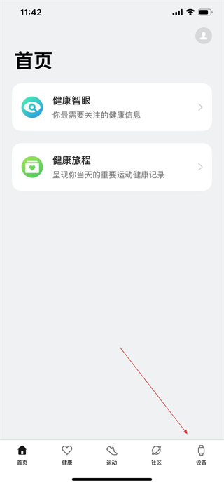 1、打开欢太健康APP首页,点击底部导航栏的设备。