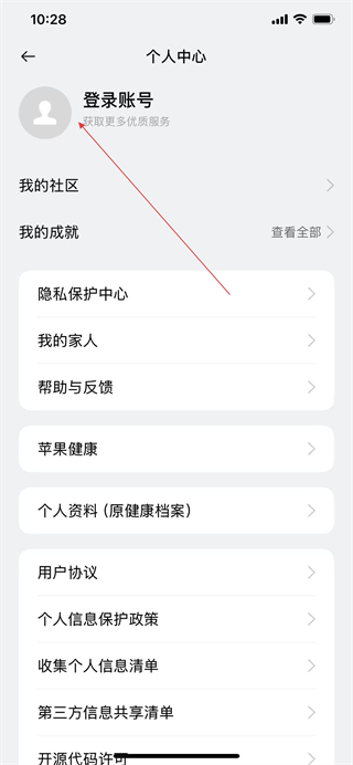 2、在个人中心页面点击登录账号选项,进入账号登录界面。