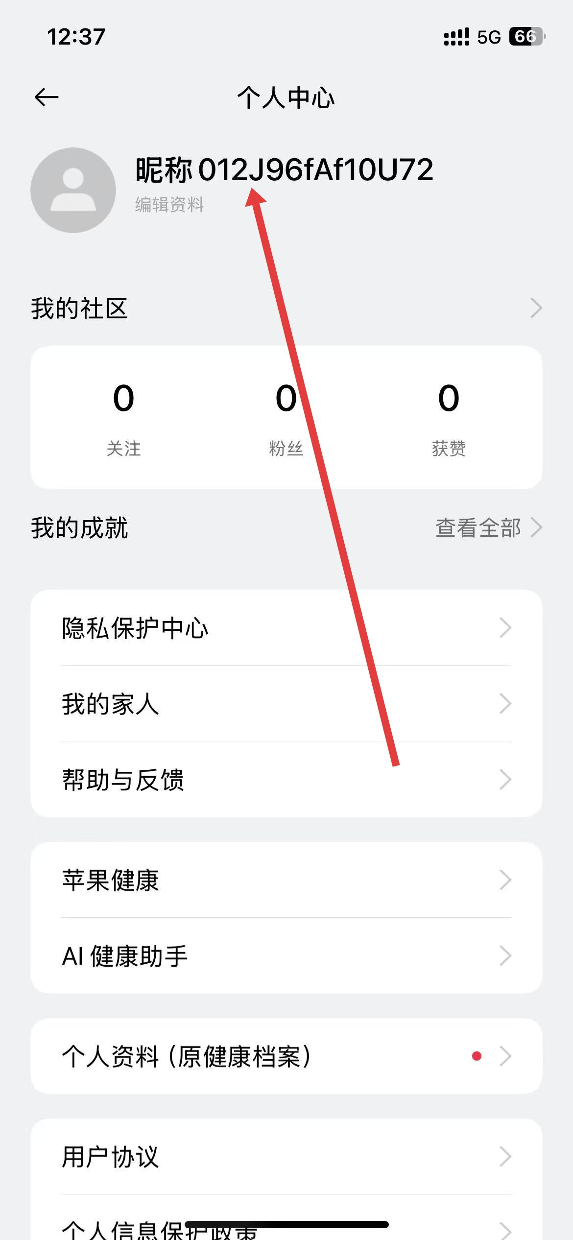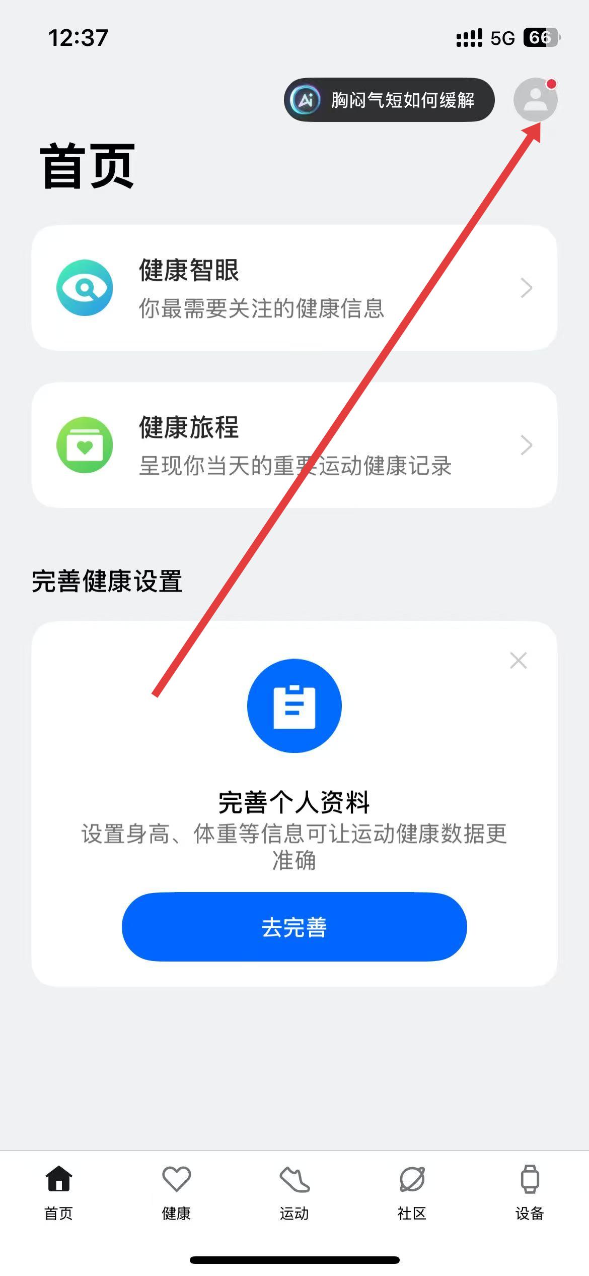 1、在欢太健康首页点击右上角的个人头像,进入个人中心页面。
