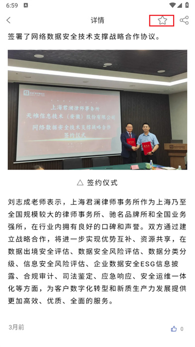 5、还可以点击屏幕右上方的星星按钮来进行文章的收藏;