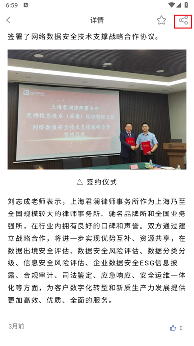 6、也可以点击屏幕右上方的分享按钮,来进行文章的分享;
