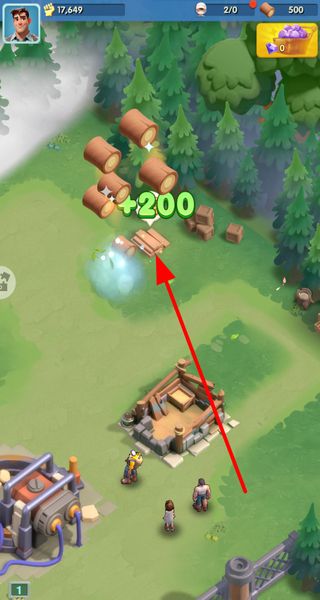 1、点击场景中收集木材资源,获取对应的数量积累物资,为后续的建造操作做准备。
