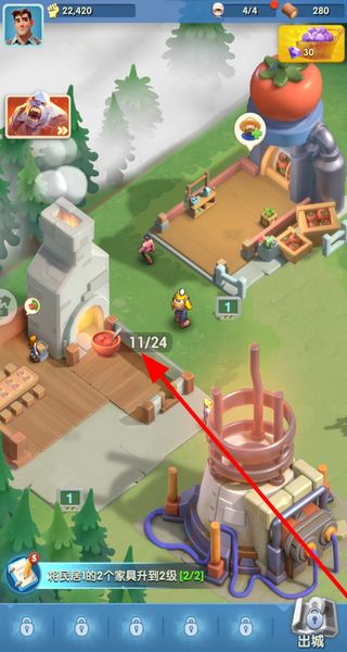 3、在民居界面建造床和马桶等家具,提升角色的睡眠和心情属性,推进民居的升级进度。