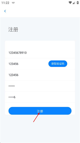 3、在注册界面依次输入手机号、短信验证码、用户注释、设置密码、确定密码。