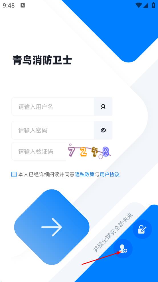 1、找到青鸟消防卫士登录界面的加号图标,点击该图标。