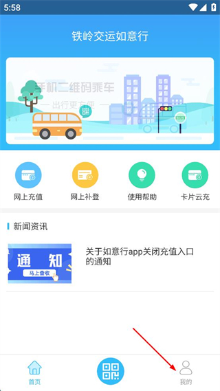 1、进入铁岭交运如意行首页,找到底部功能栏里的我的选项,点击该选项进入个人页面。
