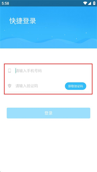 3、在快捷登录界面,找到请输入手机号码输入框,填写对应的手机号码信息。