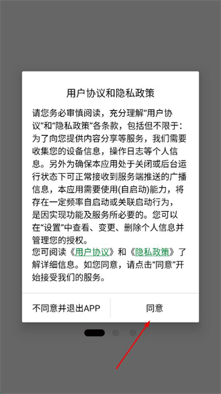 1、阅读用户协议和隐私政策内容,确认后点击同意按钮,完成协议确认环节。