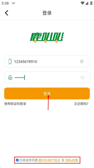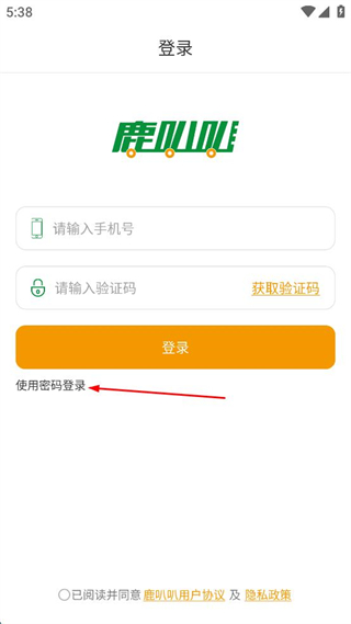4、勾选已阅读并同意鹿叭叭用户协议及隐私政策选项,点击登录按钮完成操作。
