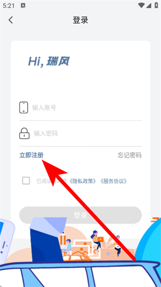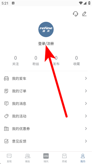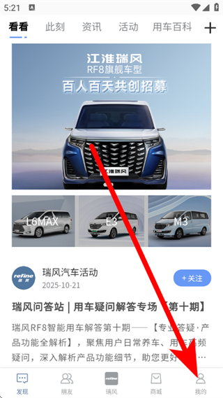 1、打开瑞风汽车,点击底部我的,进入个人页面。