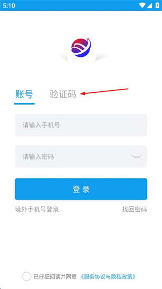 2、进入登录页面后,找到验证码选项并点击,切换到验证码登录的界面。