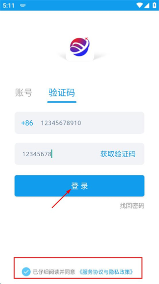 4、勾选已仔细阅读并同意服务协议与隐私政策,然后点击登录按钮完成操作。