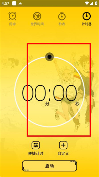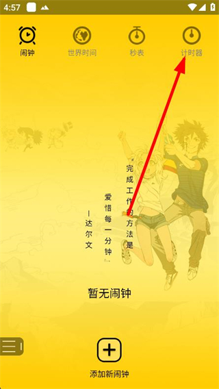 1、打开二次元闹钟app,点击顶部导航栏的计时器选项。