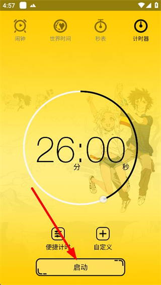 3、设置好时长后,点击底部的启动按钮,即可开始计时。