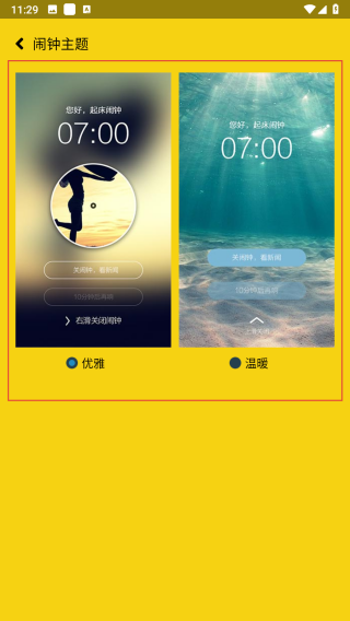 3、进入闹钟主题页面后,选择喜欢的主题。