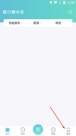 1、打开联行秦e充,进入主界面后点击底部的我的选项,进入对应的个人中心页面。