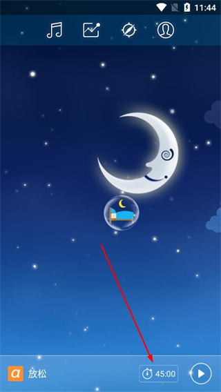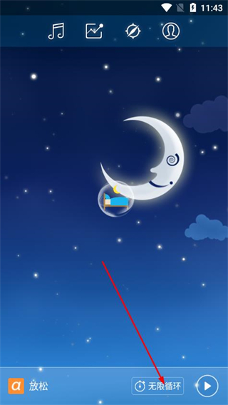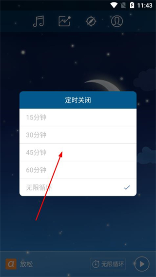 1、打开催眠大师APP,在主界面点击底部的无限循环,弹出定时关闭选项列表。