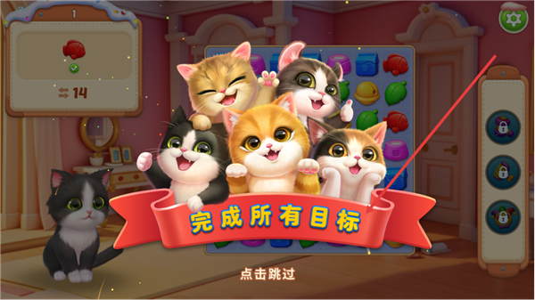 4、完成所有消除目标后,出现完成所有目标提示,点击跳过即可结束关卡。