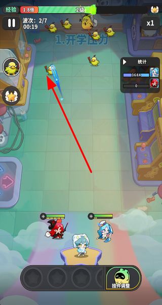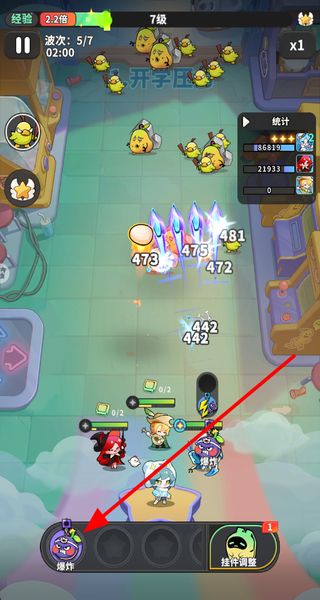 1、进入关卡后,操控角色召唤出战斗单位,这些单位会自动攻击出现的怪物,持续作战推进当前波次的进度,积累经验提升等级。