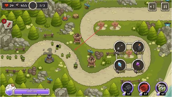 1、消耗资源在道路旁建造防御塔,阻挡敌人前进,保护自身血量,推进关卡。