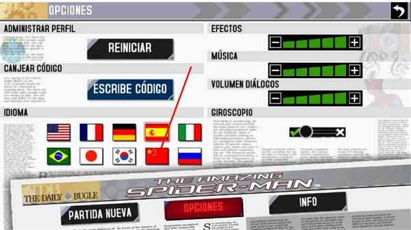 1、在游戏主界面点击OPCIONES按钮,进入设置界面。